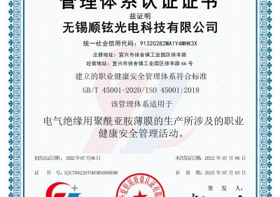 • 無錫順鉉光電職業(yè)健康安全管理體系認(rèn)證證書(S)